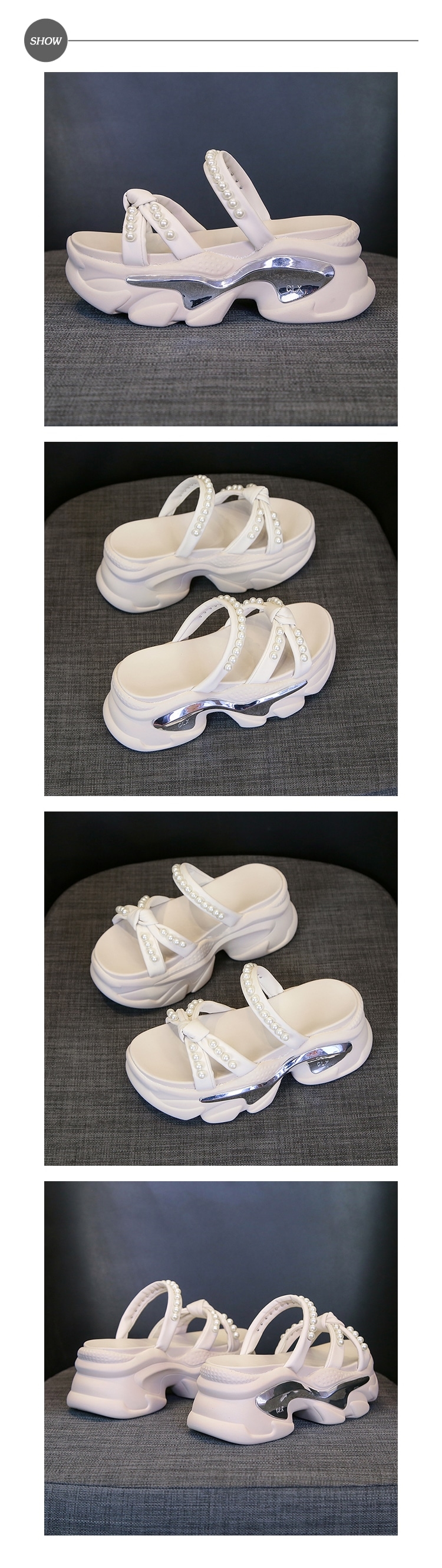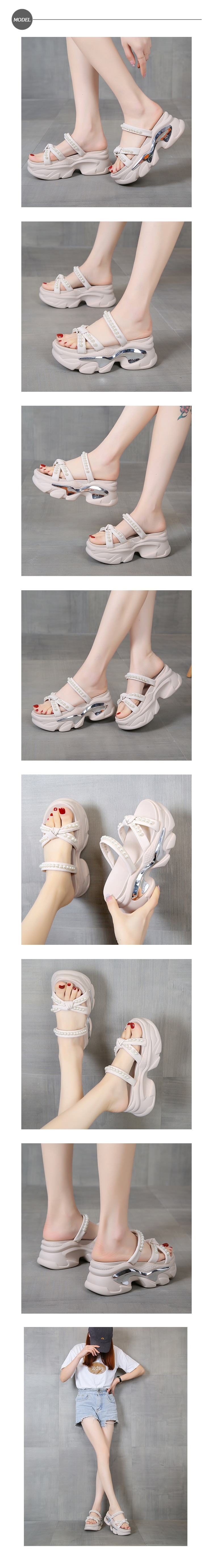【HMH】兩穿蝴蝶結厚底拖鞋/甜美珍珠蝴蝶結造型厚底拖鞋 女鞋 米