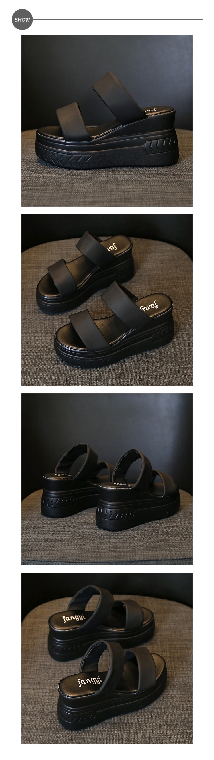 【HMH】兩穿厚底坡跟拖鞋/百搭經典寬版一字帶造型厚底坡跟拖鞋 女鞋 黑