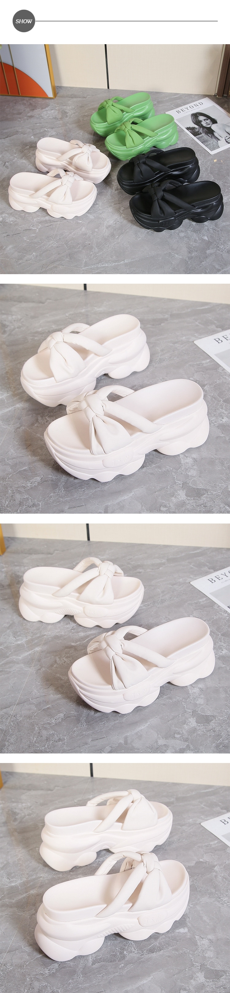 【HMH】蝴蝶結厚底拖鞋/優雅蝴蝶結造型厚底拖鞋 女鞋 米
