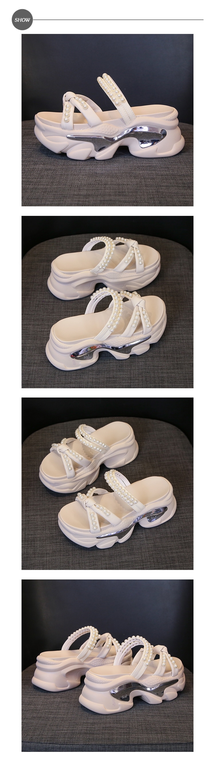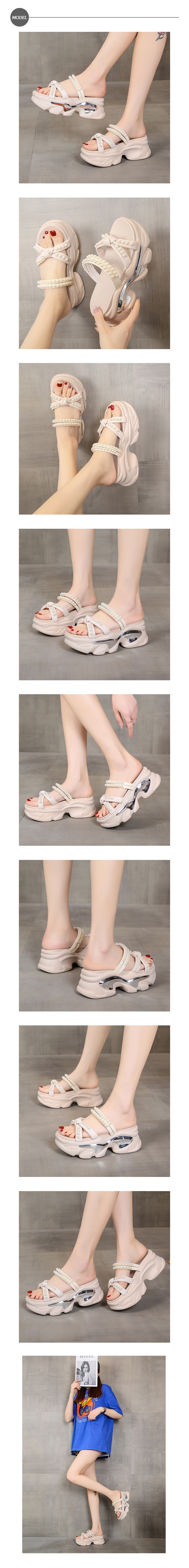 【HMH】蝴蝶結珍珠兩穿厚底涼拖鞋/浪漫蝴蝶結珍珠鍊帶兩穿法設計厚底涼拖鞋 女鞋 米