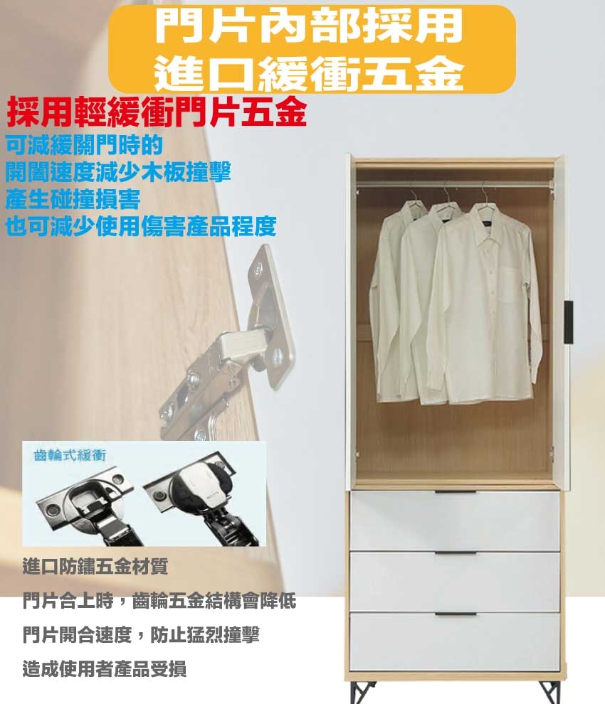 採用防蛀木心板+烤漆五金腳座+防夾手緩衝五金+五金滑軌結構等安心材質製造
