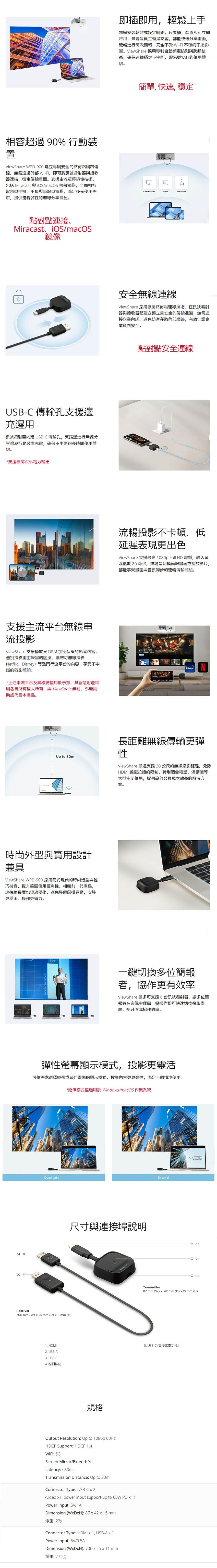 ViewSonic 優派 WPD-900 無線投影傳輸套組