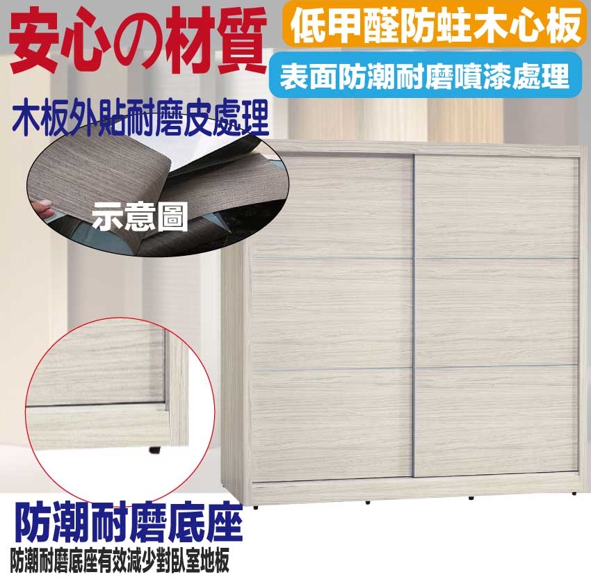 採用防蛀木心板+防潮耐磨底座+五金滑軌結構+強化玻璃鏡面內+含側拉穿衣鏡面等安心材質製造