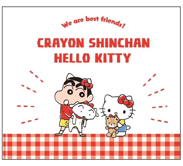 ●主題為《We are best friends!》,在圖案設計上讓小新擁抱小白並配戴凱蒂貓經典蝴蝶結,與仰慕凱蒂貓而配戴蝴蝶結的Tiny chum泰迪作為呼應,而彼此皆是對方的好朋友搭檔。