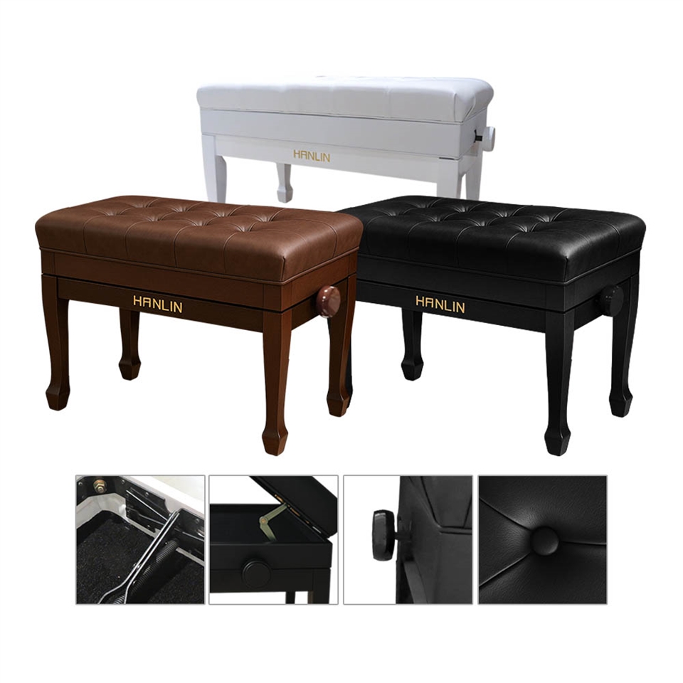 HANLIN P-DB0121 頂級豪華 有書箱 雙人 鋼琴升降椅 質感 鋼琴椅 咖啡木紋款 黑款 白款 紮實座面 支撐大腿 大寬面 久坐 舒服 舒適 屁股不痛 音樂 教學 教室 演奏廳 練習室 音樂人 音樂家 表演 演藝 舞台 管樂 大提琴 豎琴 椅子