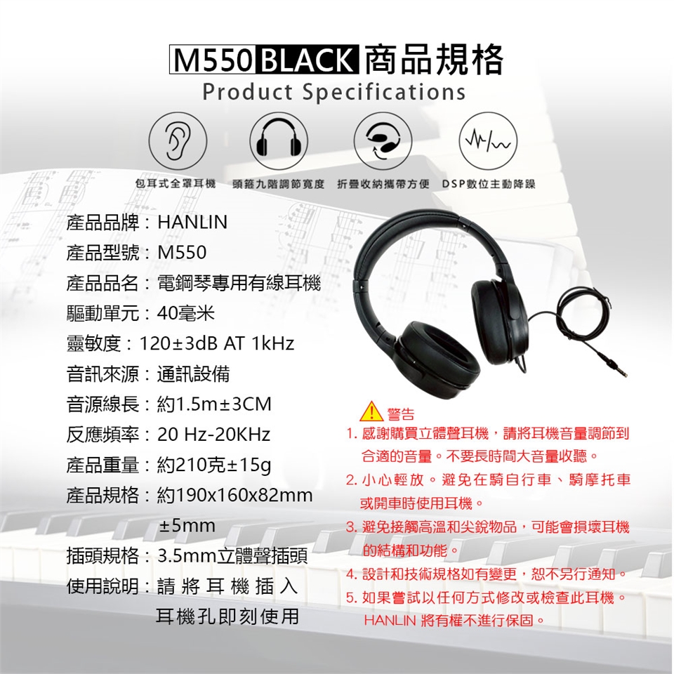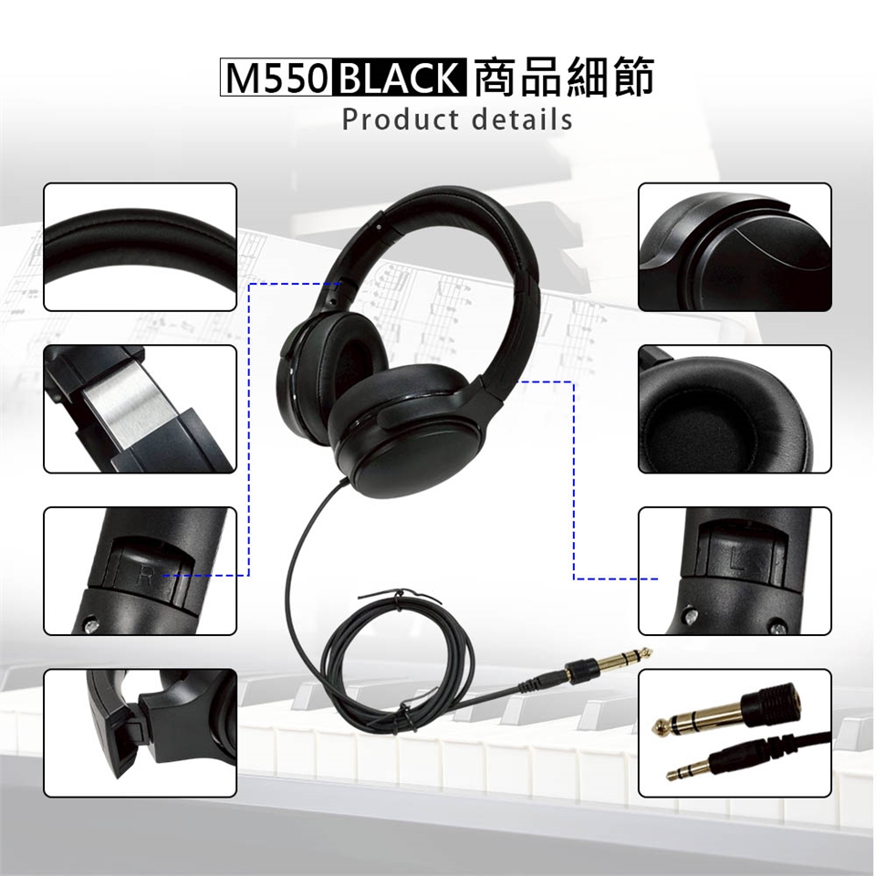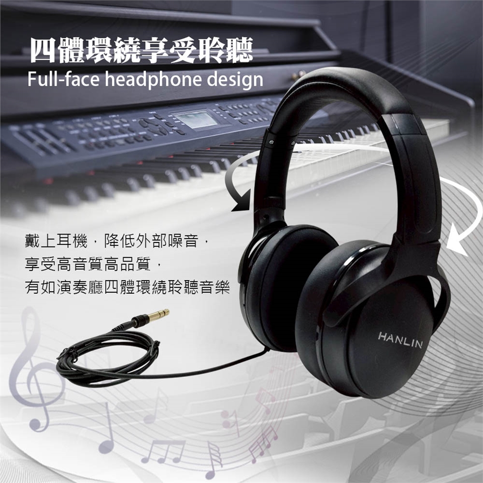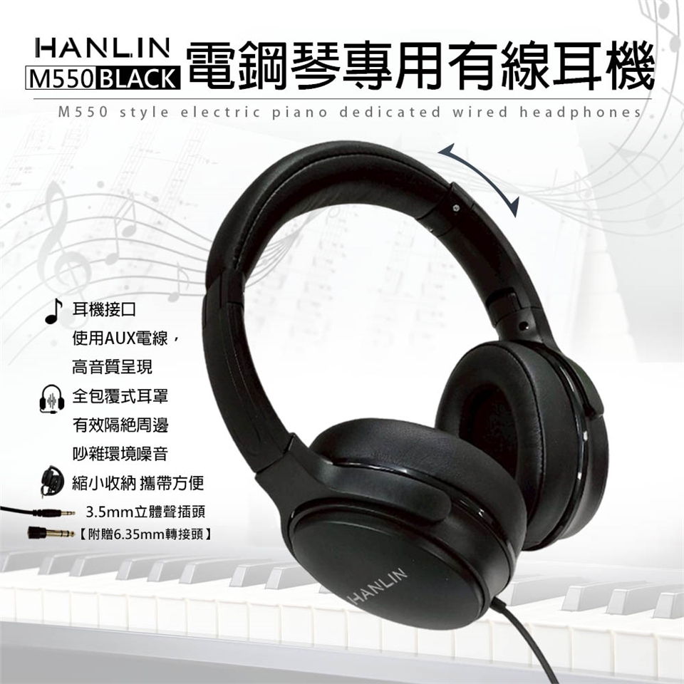 HANLIN-M550 通用全罩式有線耳機 電鋼琴專用 音色柔和 柔軟仿皮質感 親膚伸縮設計 耳罩全包覆密合 主動降噪 折疊 全罩式 耳機 音樂工作者 音樂人 影片剪輯 錄音 放鬆娛樂 聽音樂 手機耳機