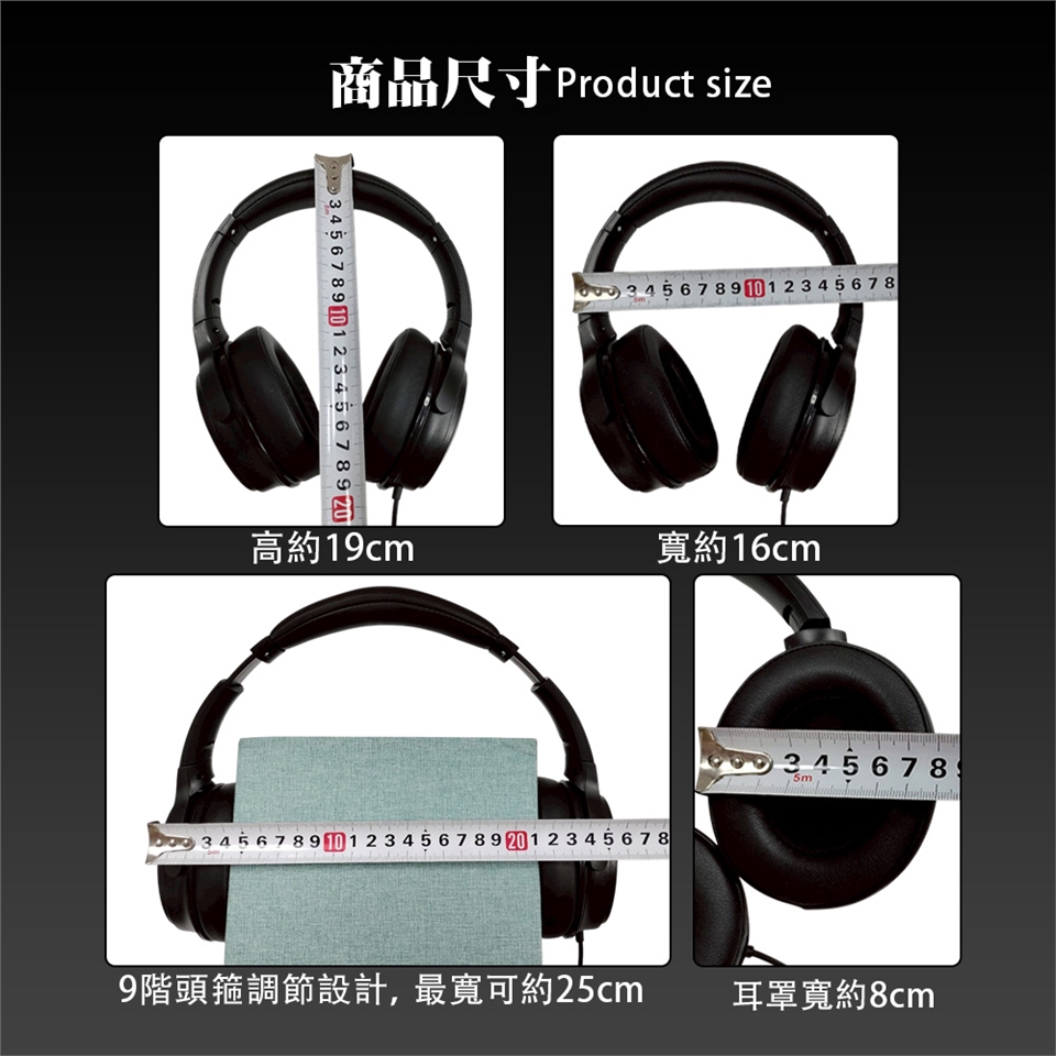這款耳機為有線式黑色全罩耳機,具有以下特色:
