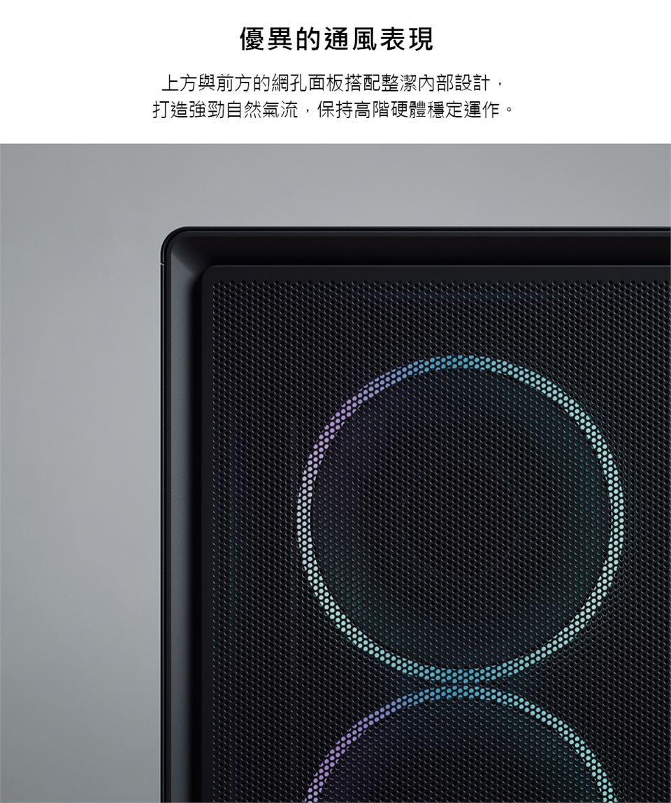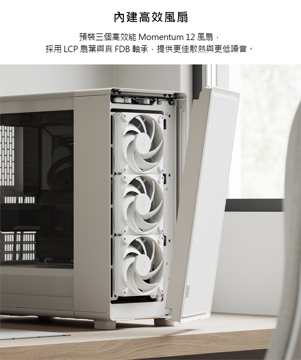 佳化配置,並預裝三顆強力Momentum 12 風扇,確保高階硬體能長時間穩