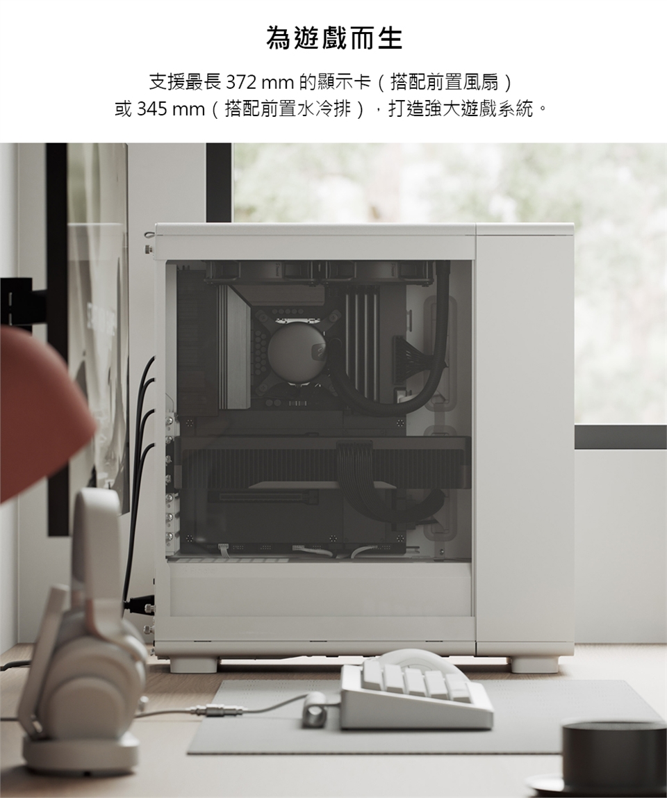 定運作。內部空間支援最長達 372 mm 的顯示卡,並相容最大360 mm水