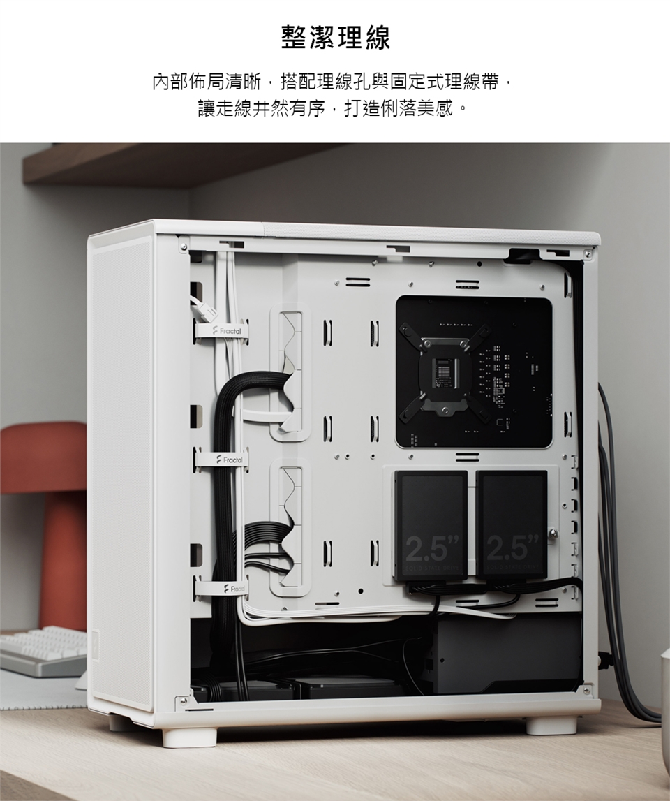 內部佈局清晰,搭配理線孔與固定式理線帶