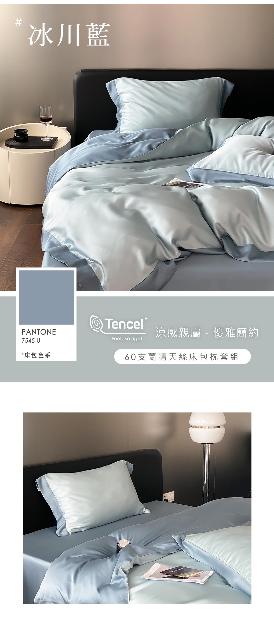 BELLE VIE 頂級60支涼感天絲 法式雙色 單人歐規床包枕套2件組【120X200cm】 宜家規格 涼爽親膚