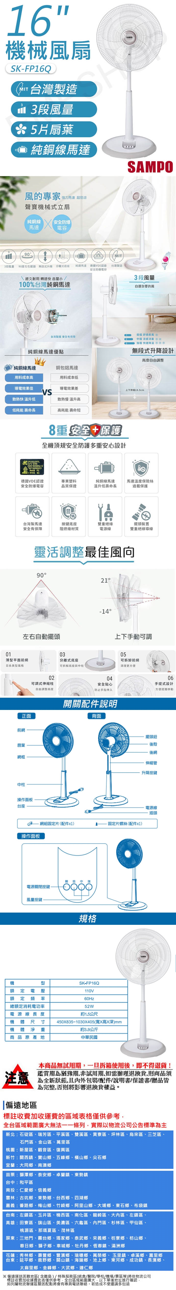 【聲寶SAMPO】16吋機械風扇 SK-FP16Q
