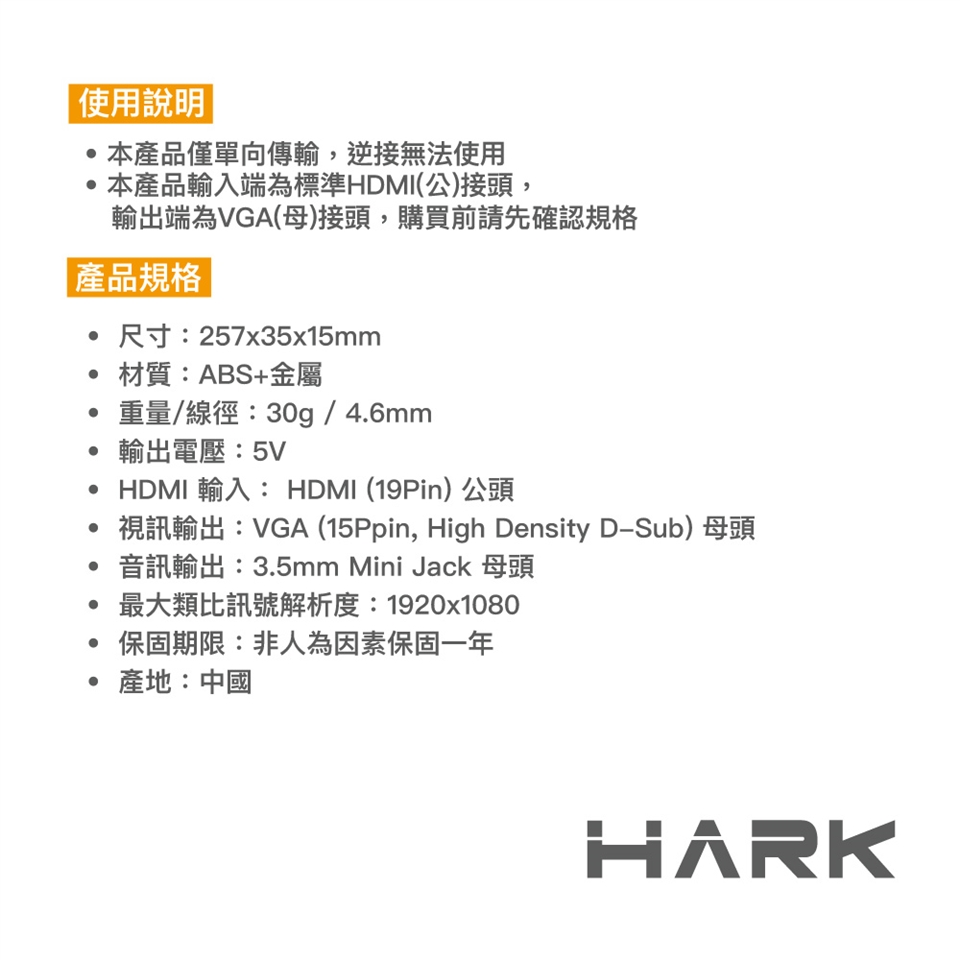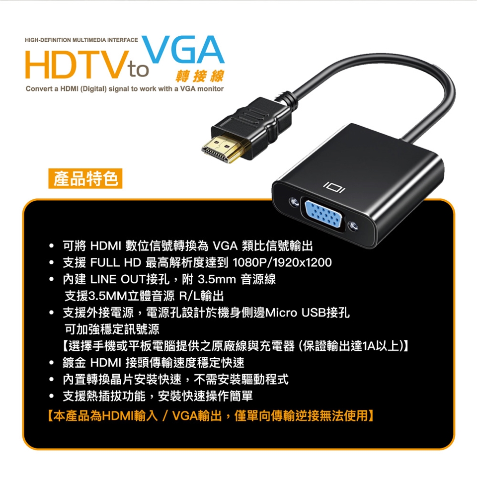 本產品輸入端為HDMI公頭輸出端為VGA母頭,購買前請先確認規格