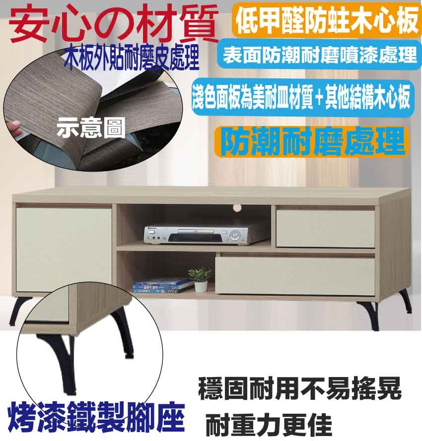 【文創集】美斯5尺二抽單門電視櫃 淺橡雙色系+安心材質製造,使用放心+搭配居家更便利,採用防蛀木心板+烤漆五金腳座+耐磨美耐皿板+五金滑軌結構等安心材質製造 ,外層採用防潮耐磨噴漆處理搭配採用開門櫃+二抽屜+開放式層格等收納空間設計,全由專人配送到家,專業安心服務,替你省下更多時間!