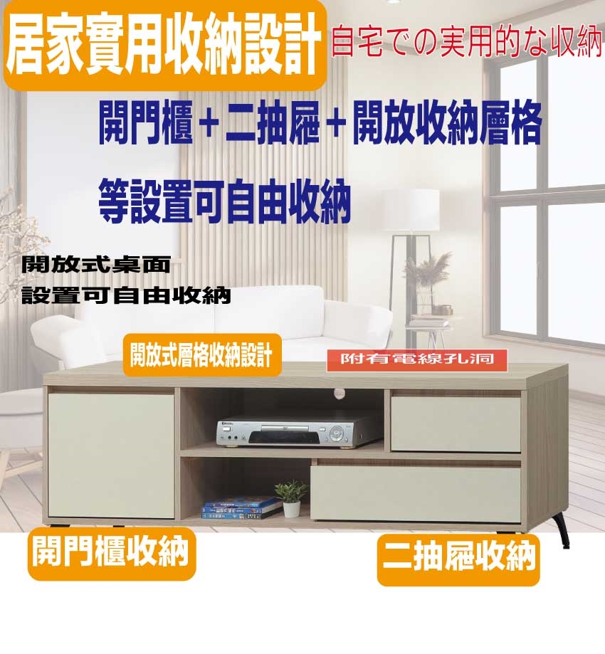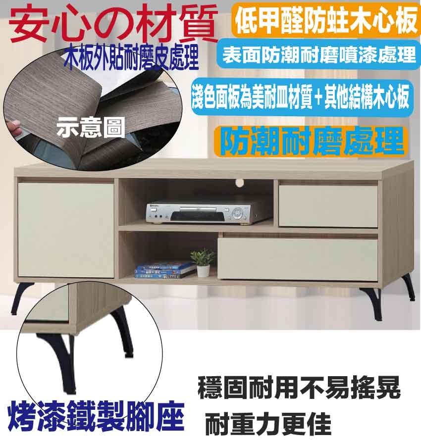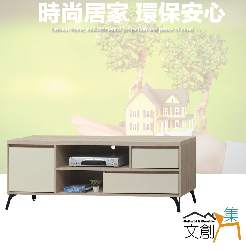 【文創集】美斯4尺二抽單門電視櫃 淺橡雙色系+安心材質製造,使用放心+搭配居家更便利,採用防蛀木心板+烤漆五金腳座+耐磨美耐皿板+五金滑軌結構等安心材質製造 ,外層採用防潮耐磨噴漆處理搭配採用開門櫃+二抽屜+開放式層格等收納空間設計,全由專人配送到家,專業安心服務,替你省下更多時間!