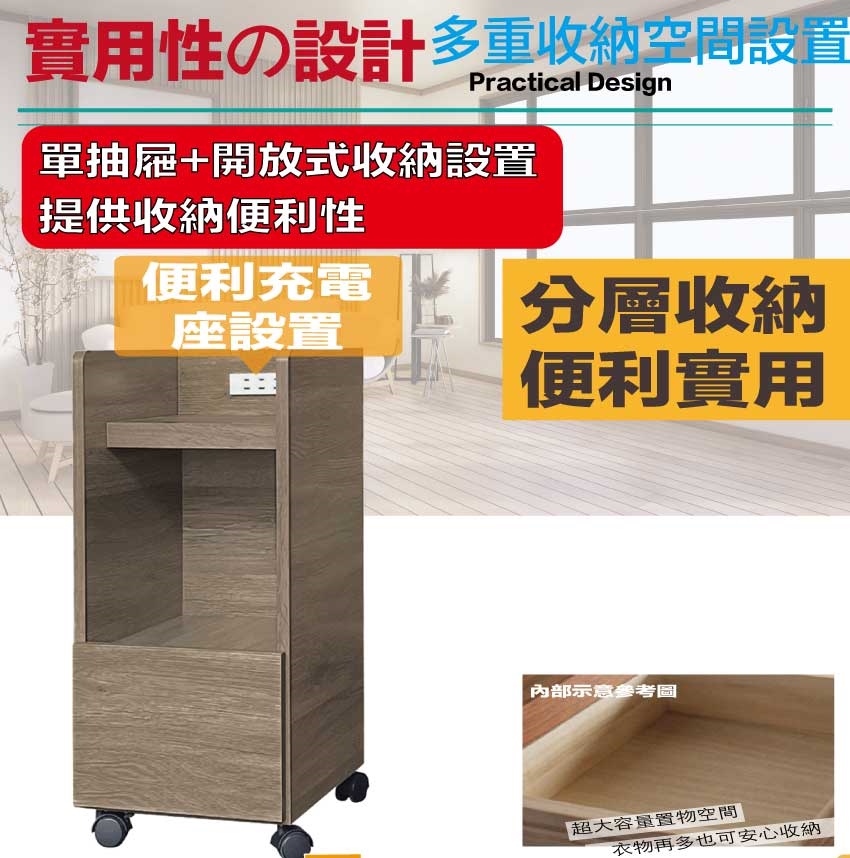 【文創集】包格斯1尺單抽活動櫃(四色可選) 四色可選+安心材質製造,使用放心+搭配居家更便利,採用防蛀木心板+便利滑輪設置等安心材質製造 ,外層採用防潮耐磨噴漆處理搭配採用單抽屜+開放層格+便利插座等收納空間設計,全由專人配送到家,專業安心服務,替你省下更多時間!