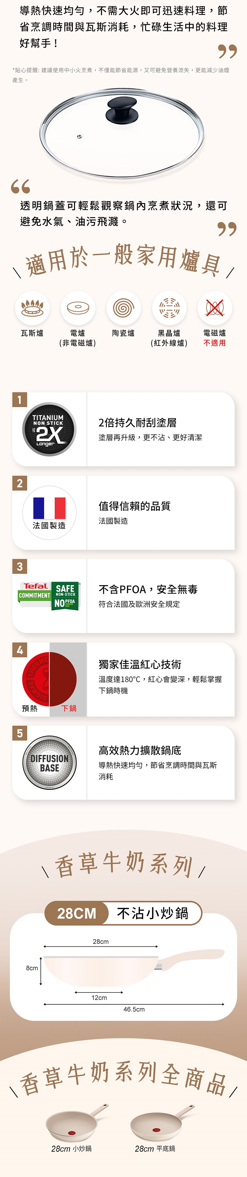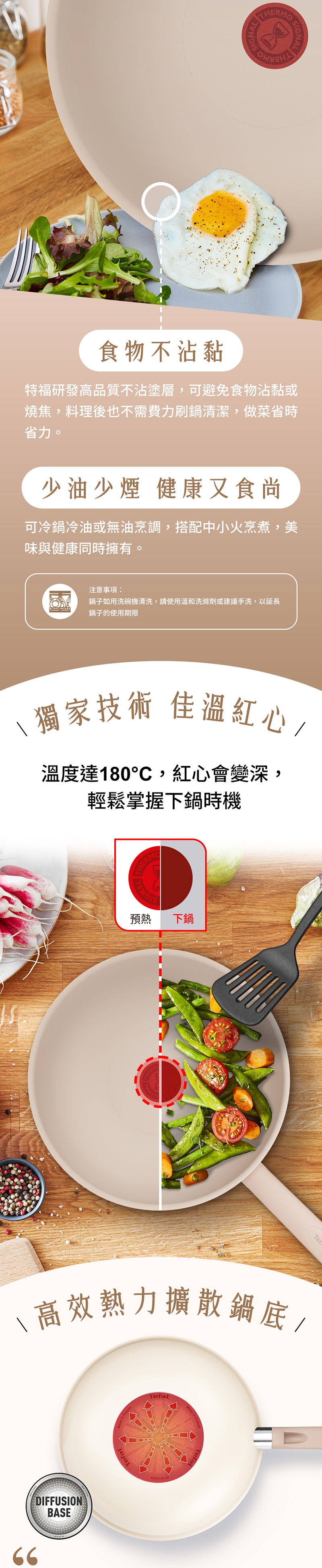 4.特福不沾鍋因鍋底設計具有高傳熱功能,建議用中小火烹調即可,節省能源又可避免營養流失,更能減少油煙的產生。