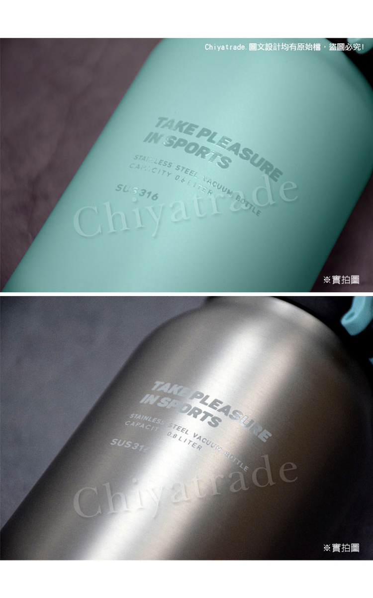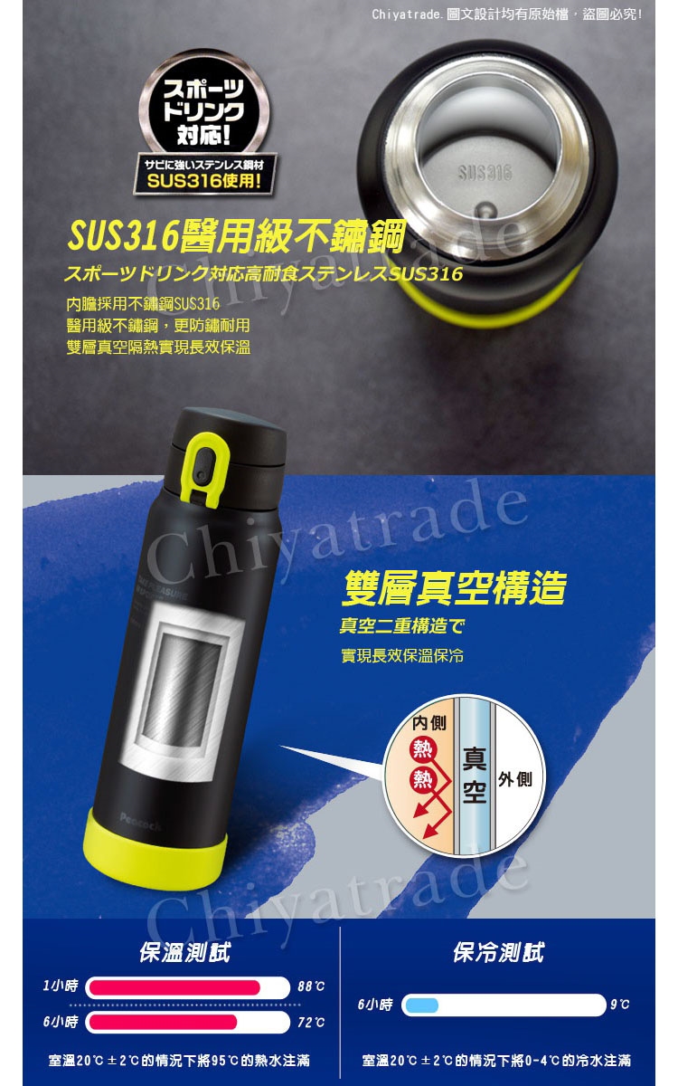 內膽採用不鏽鋼SUS316 (外膽為不鏽鋼SUS304), 醫用級不鏽鋼,更防鏽耐用。即使放運動飲料也不怕。