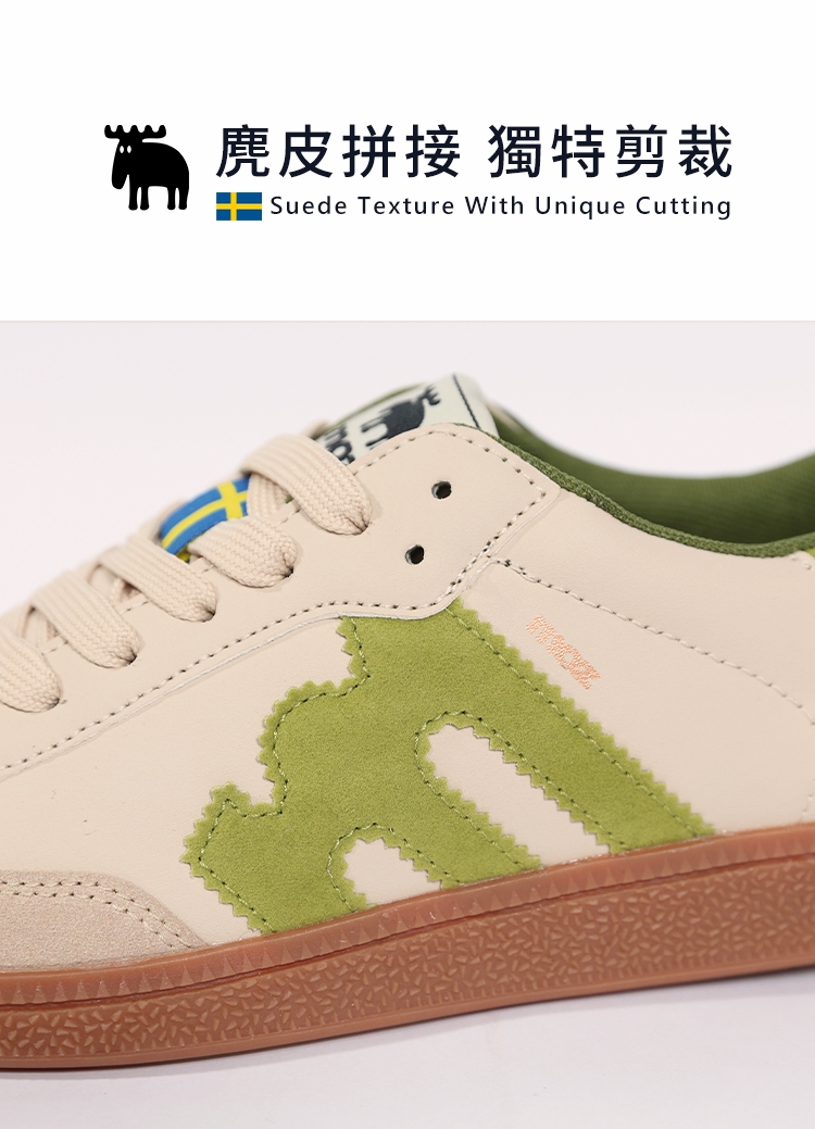 鞋面選用麂皮質感與合成皮縫紉拼接,打造層次分明的視覺風格。