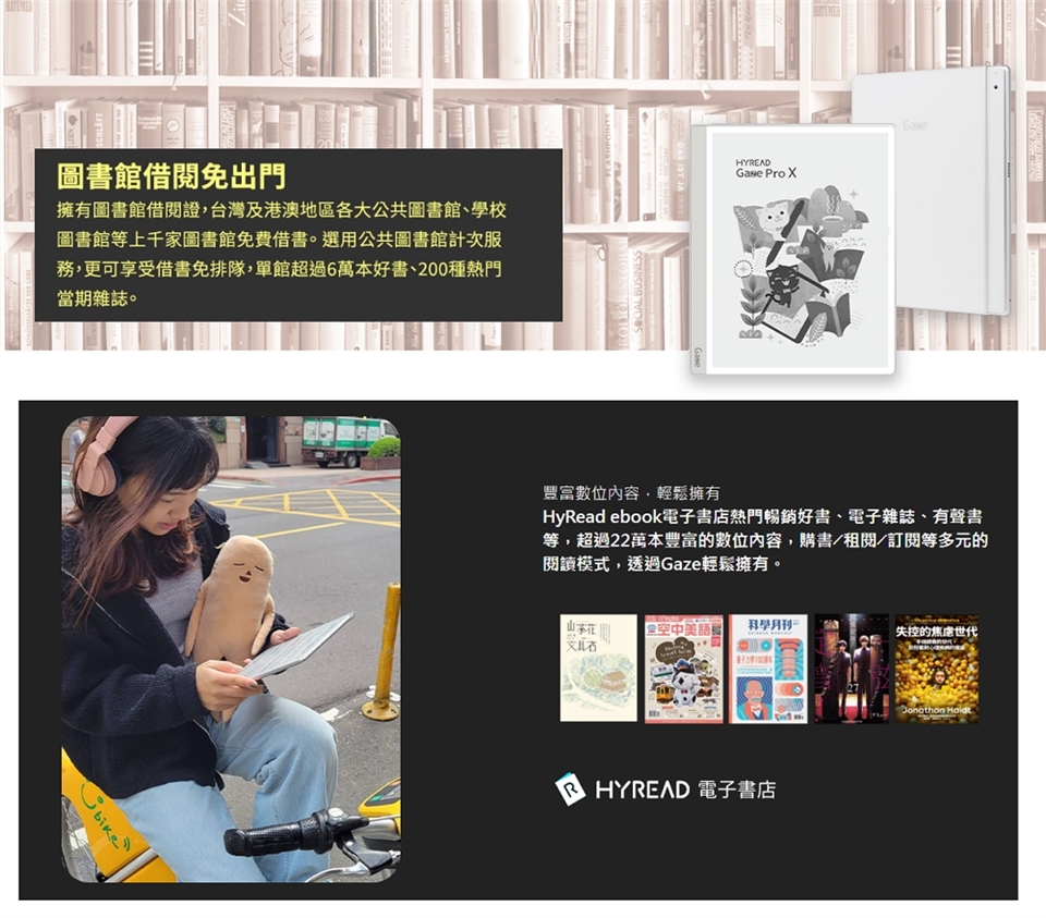 | 活動說明 | 活動期間於以上通路購買以下Gaze系列閱讀器主機,可獲贈購書金折價券。 (1) 購買一台HyRead Gaze Mini CC 6吋幾米彩色電子紙閱讀器主機,可獲贈購書金折價券【300元】。 (2) 購買一台HyRead Gaze Pro Note C 7.8 吋全平面彩色電子紙閱讀器主機,可獲贈購書金折價券【300元】。 (3) 購買一台HyRead Gaze Pro Note 7.8吋全平面電子紙閱讀器主機,可獲贈購書金折價券【300元】。 (4) 購買一台HyRead Gaze Pro X 10.3吋主機,可獲贈購書金折價券【800元】。 (5) 購買一台HyRead Gaze Pro XC 10.3吋主機,可獲贈購書金折價券【800元】。 |