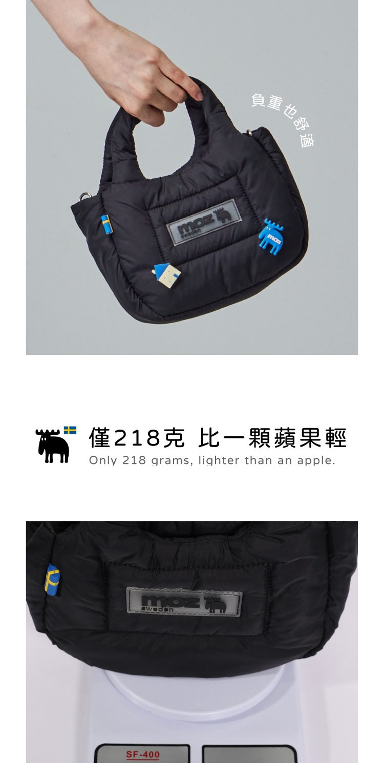 moz瑞典駝鹿LOGO與瑞典國旗膠章,展現品牌美學,增添整體質感。