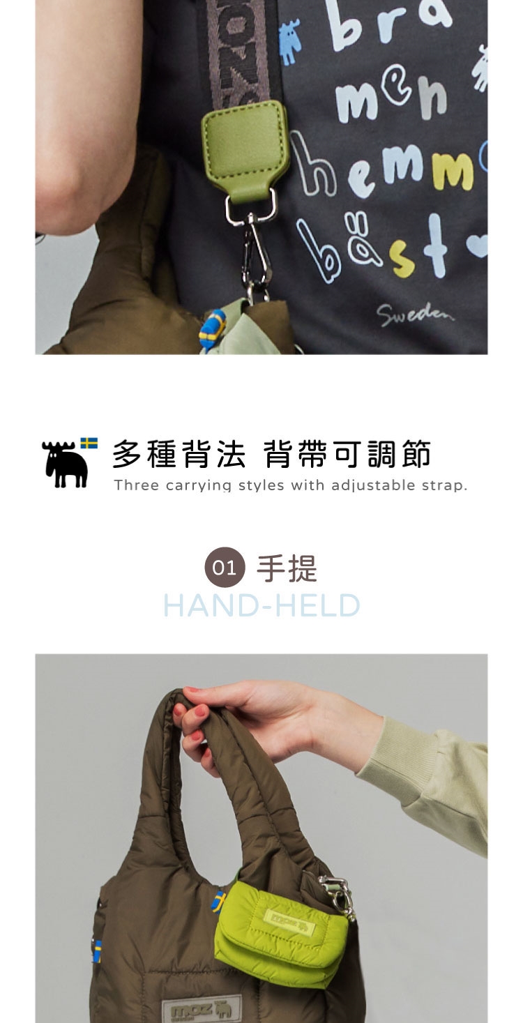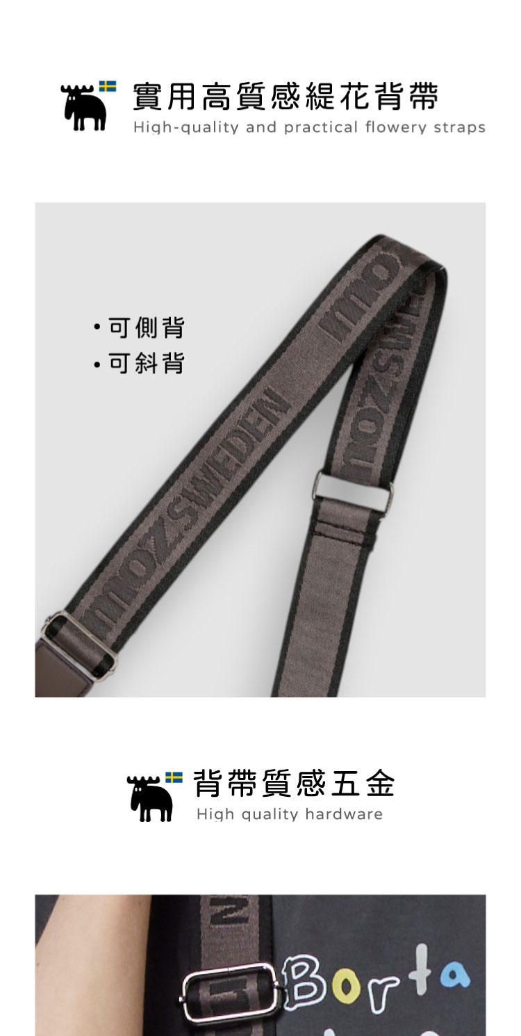 moz瑞典駝鹿LOGO與瑞典國旗膠章,展現品牌美學,增添整體質感。