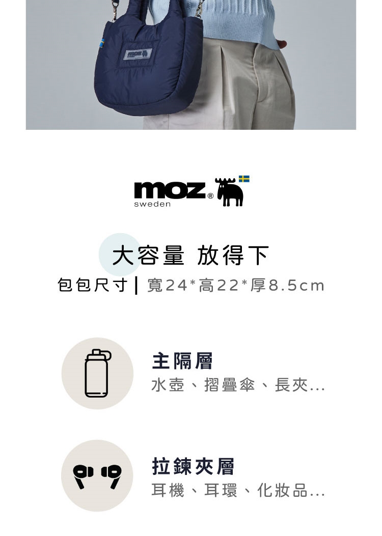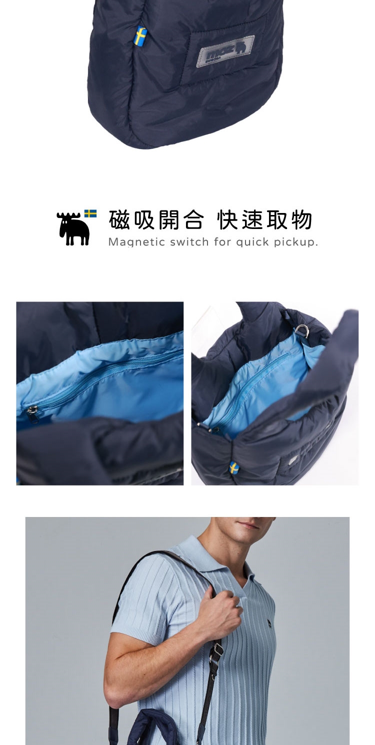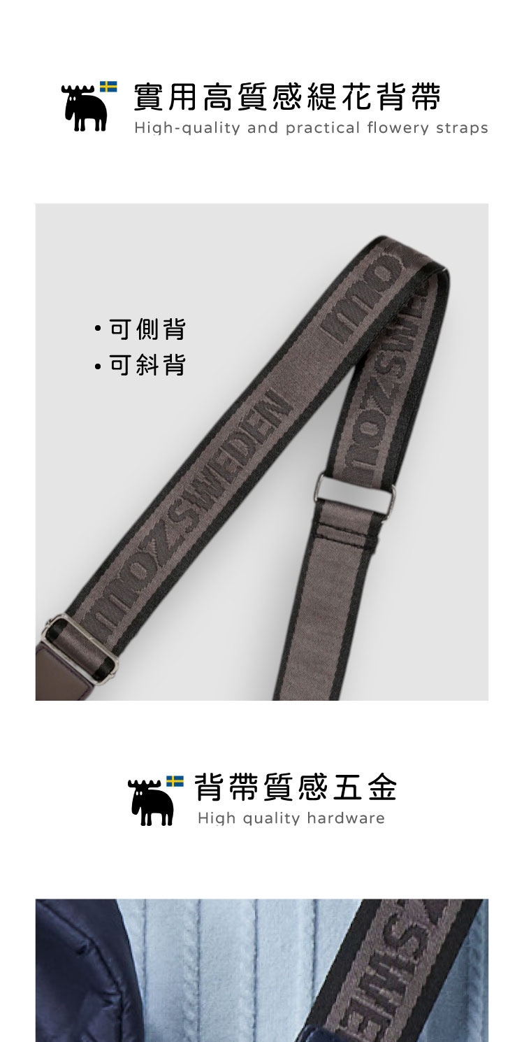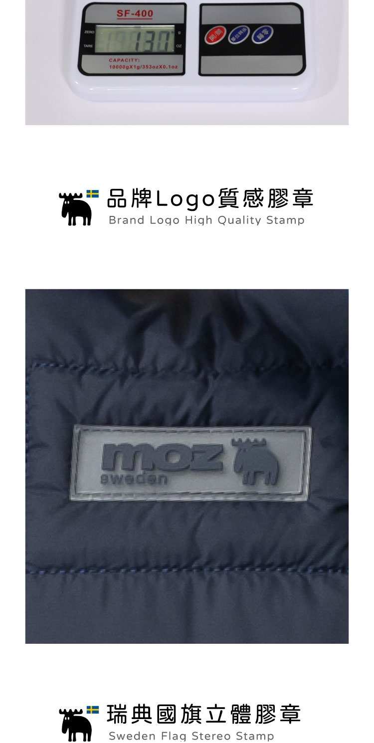 moz瑞典駝鹿LOGO與瑞典國旗膠章,展現品牌美學,增添整體質感。