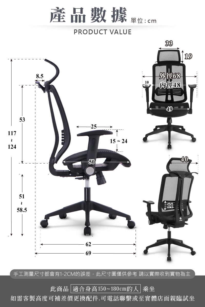 ●適用身高:150~180 cm