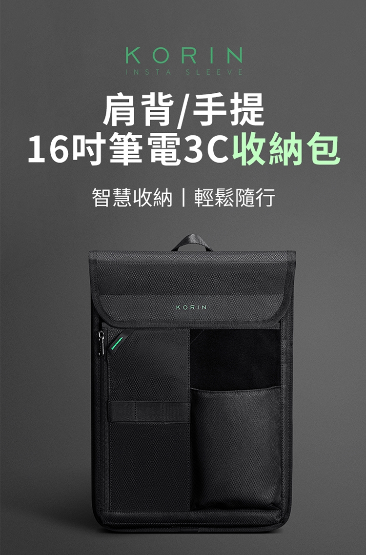 包裝內容物:KORIN Insta Sleeve 肩背/手提 筆電3C收納包*1