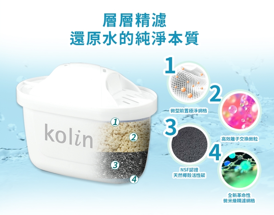【商品名稱】Kolin歌林 四重精濾濾水壺