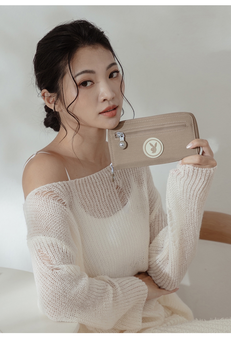 PLAYBOY - 拉鍊長夾 Daily Life系列 - 卡其色