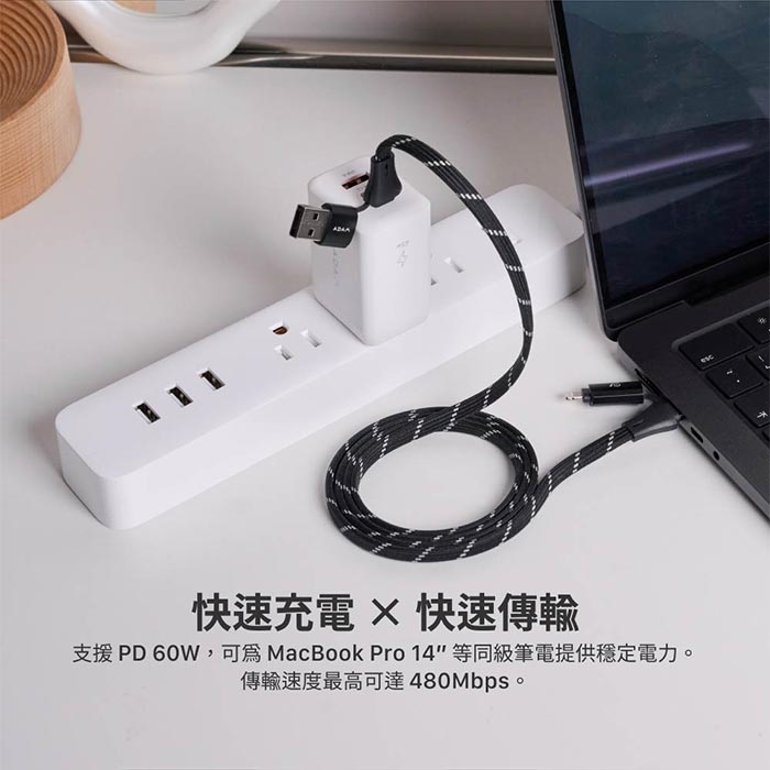 充電功率:USB-C 對 USB-C:20V / 3A, 60W Max.