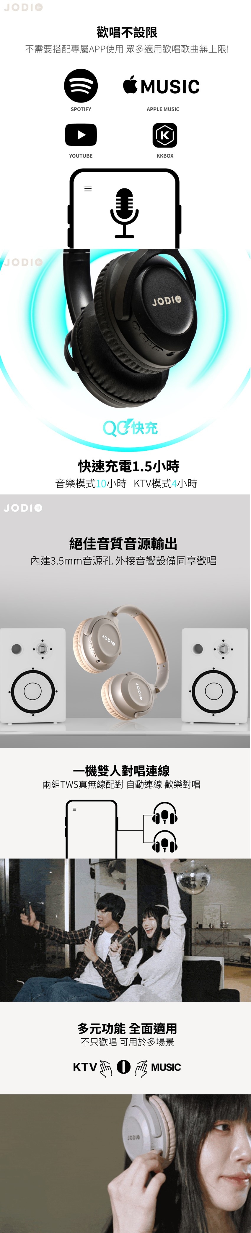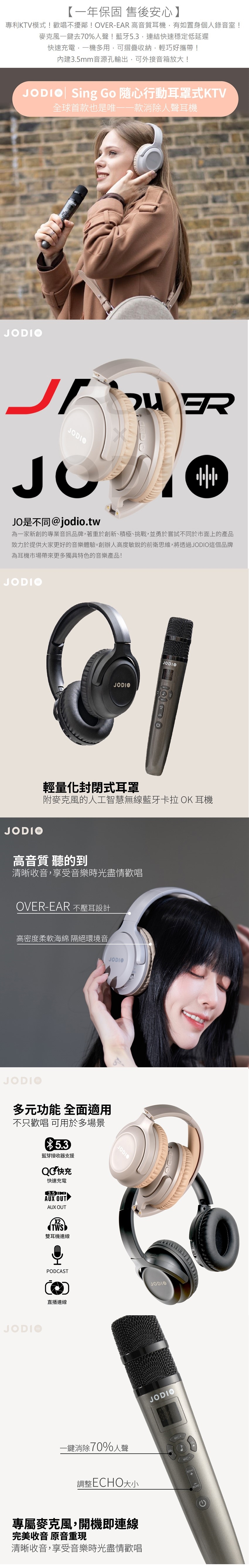 JODIO Sing Go 藍芽行動KTV耳機豪華組 二入 (酷黑)+專用時尚收納包 (灰黑) (編號:JO-AV-HKTV2LSBK2)