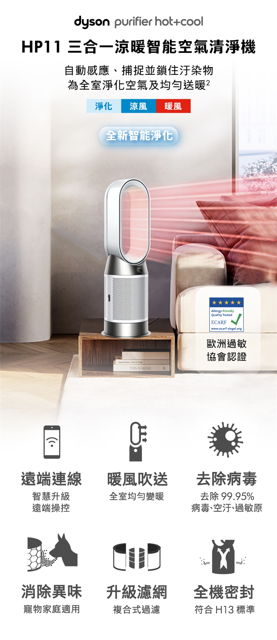 品名:Dyson Purifier Hot+Cool 三合一涼暖智能空氣清淨機HP11(白色)