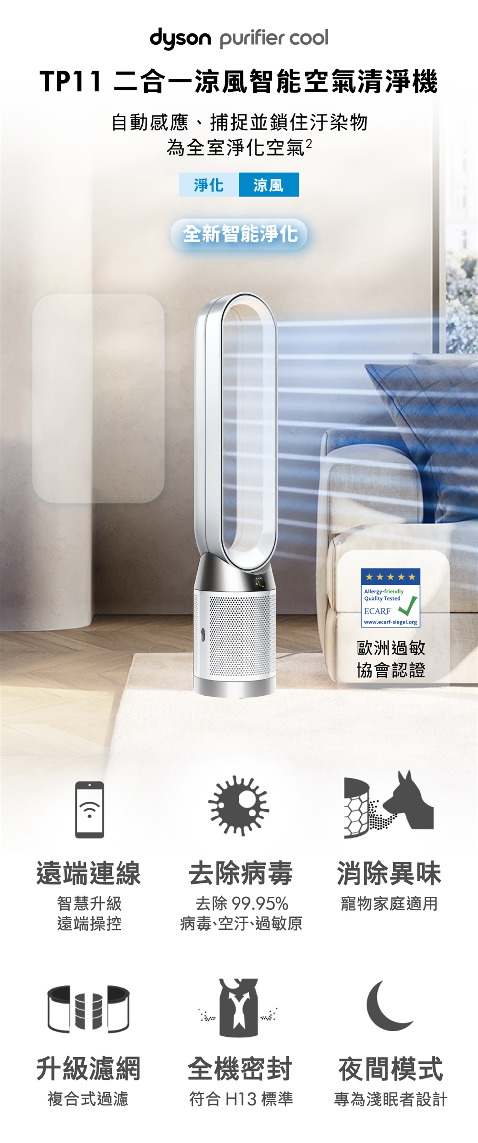 品名:Dyson Purifier Cool 二合一涼風智能空氣清淨機TP11(白色)