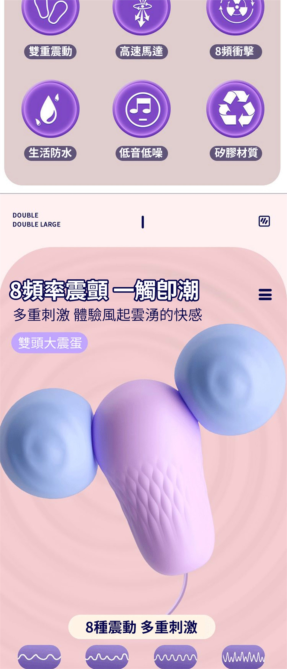 規格:電壓3.7V / 8頻震動 / 紫色 / 雙跳蛋