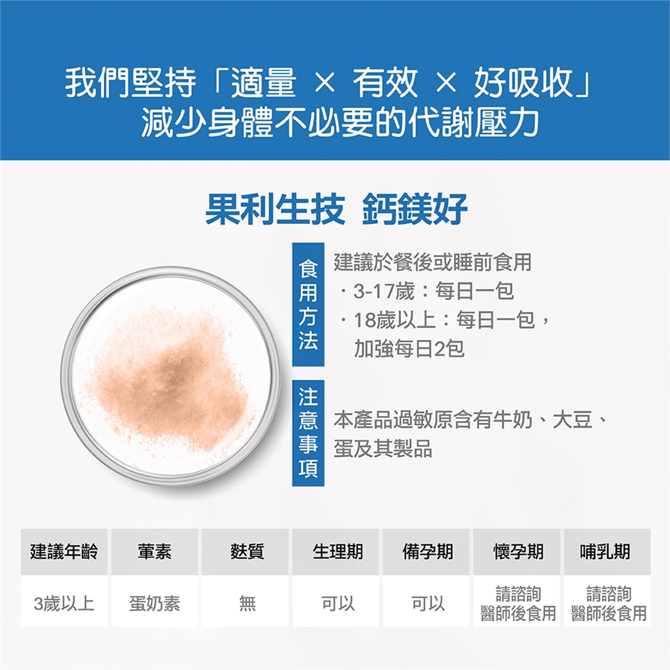三歲以上食用,每次1包,每日1-2包。餐後搭配開水食用,多食無益