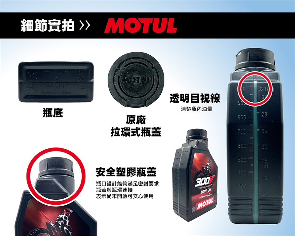 此機油為賽道等級高性能全合成機油,僅適用於四行程摩托車引擎,不可用於二行程或汽車引擎。