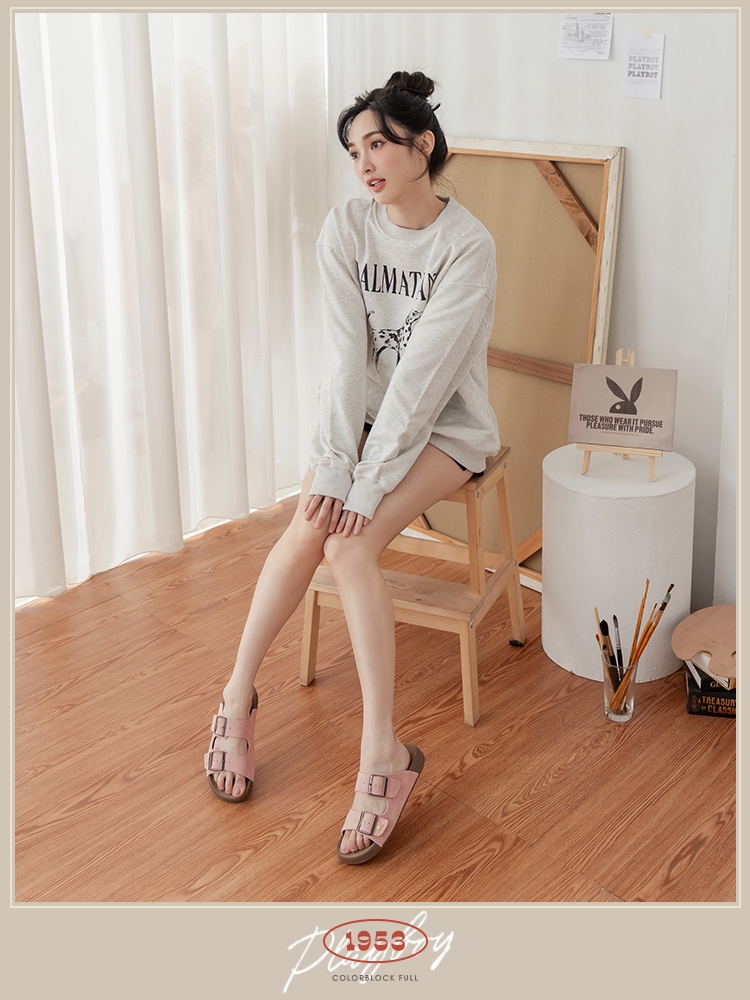 PLAYBOY 質感牛皮絨涼拖鞋-2色