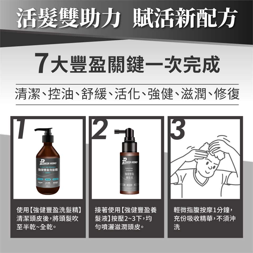 Q:PowerHero®的【強健豐盈養髮液】使用時機?