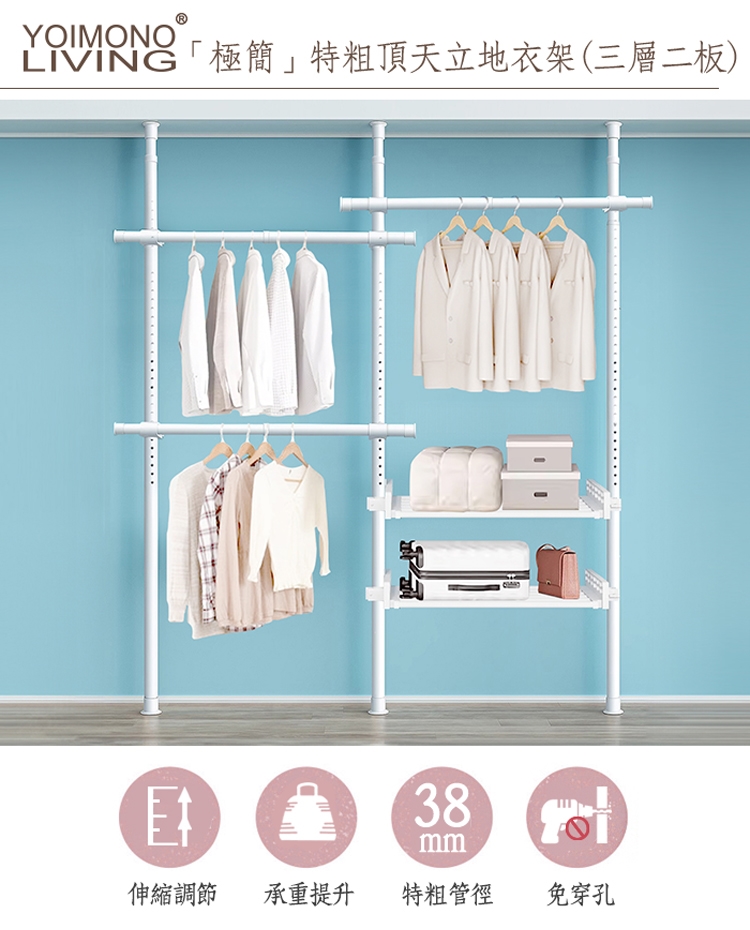 三、非水泥實心天花板,購買前可用棍狀物試頂天花板確認可以承受再購買。