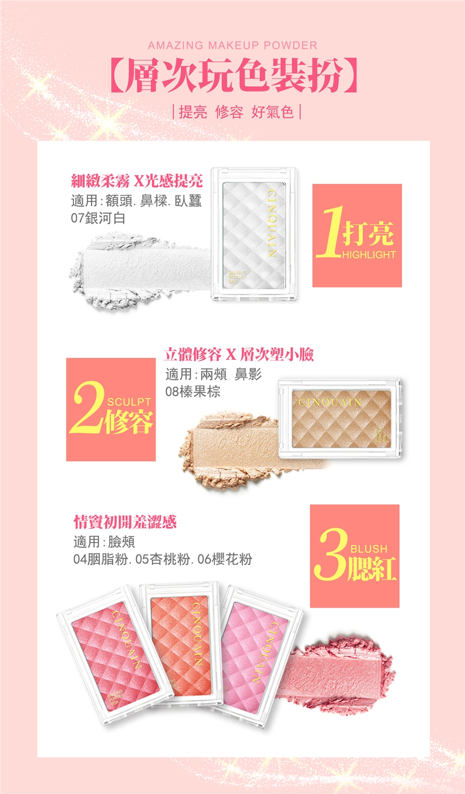 微醺迷霧立體美肌粉:腮紅刷沾取適量輕輕掃在臉頰或刷在欲修飾處。