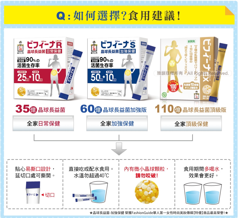 每日一包配冷開水(勿超過40℃)食用,可空腹或飯後食用,內有微小“晶球”顆粒請勿咬破,多食無益。