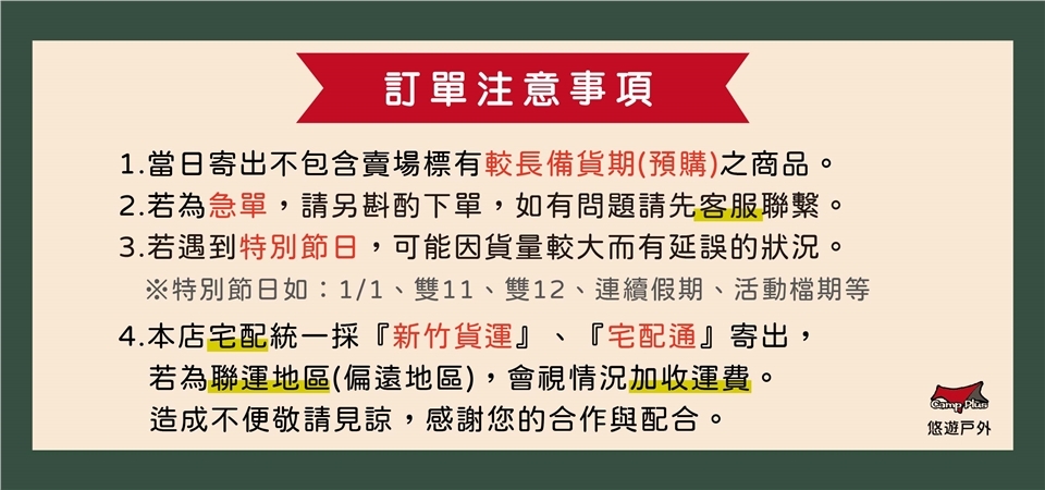 🧡悠遊戶外堅持品牌商品持續更新,歡迎臉書搜尋「悠遊戶外 Camp Plus- 露營用品專賣」。