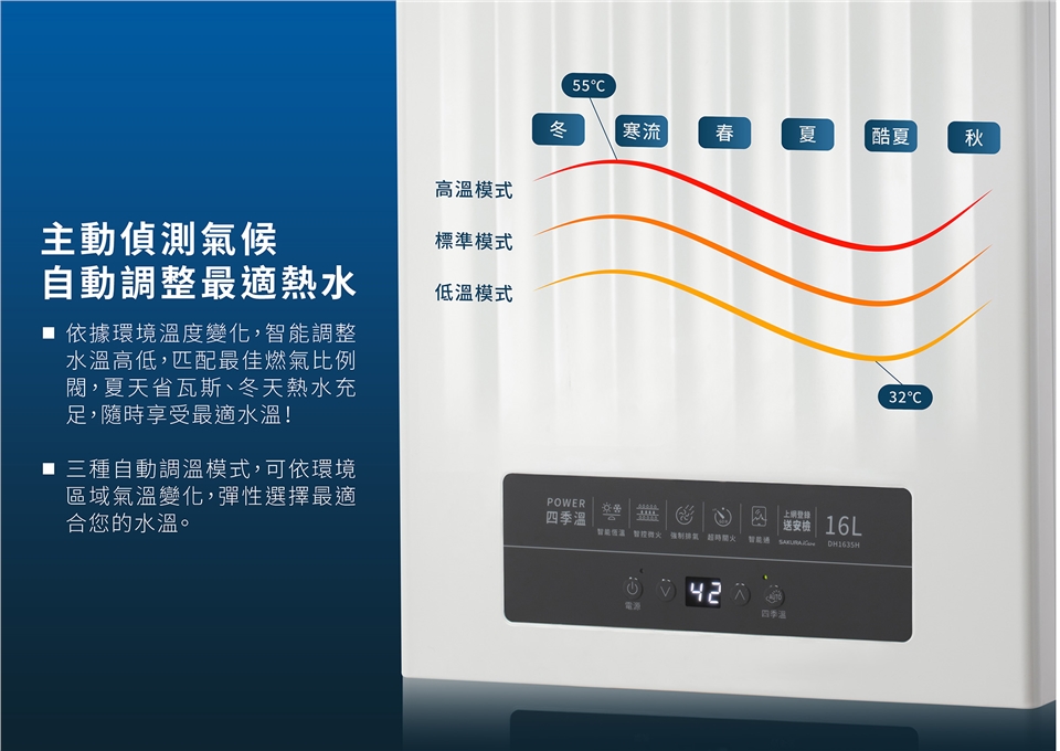 ▪ 三種自動調溫模式,彈性選擇最佳出水溫度