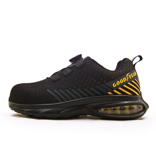 【男】GOODYEAR 固特異透氣2E寬楦旋轉扣塑鋼頭防護認證安全工作鞋 金鷹系列 黑黃灰 43970
