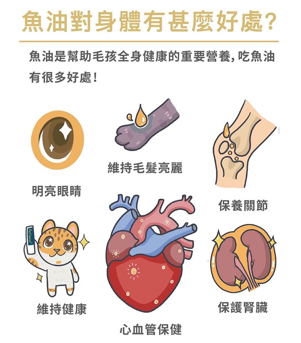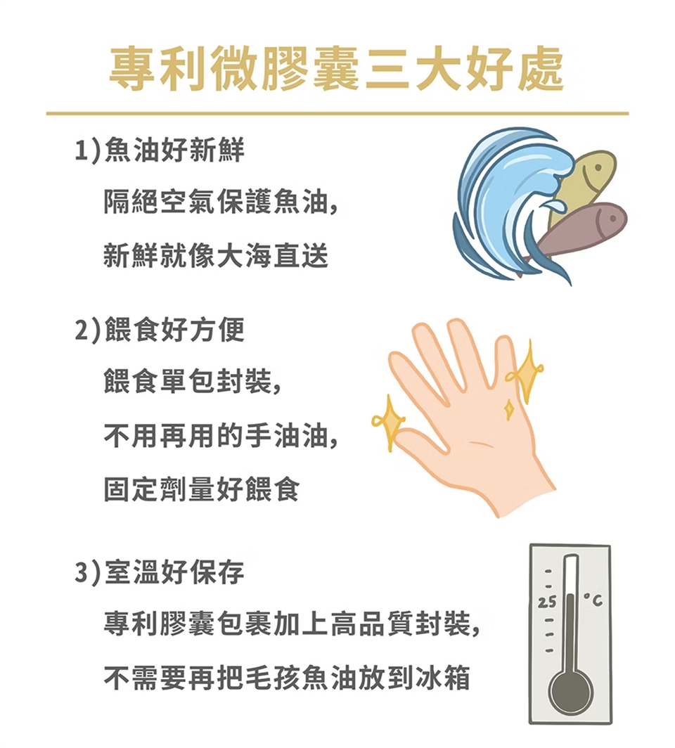 ➔方便使用:不需要再把魚油冰到冰箱,無腥味適口性超高,毛孩毛奶奶都愛吃