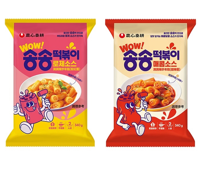 ◆年糕裡裹滿了粉紅醬,調味粉中加入了辣椒粉,為食材增添了豐富的口感,打孔的年糕讓食材更加入味