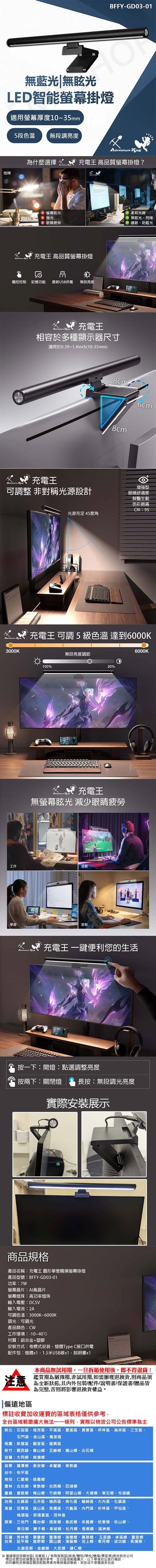 【充電王】觸控式智能螢幕掛燈 BFFY-GD03-01