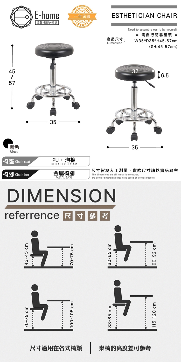 [E-home]樂兒高承重柔軟PU皮可旋轉升降美容椅-黑色,居家及店面都適用的靈活好幫手,組裝輕鬆。